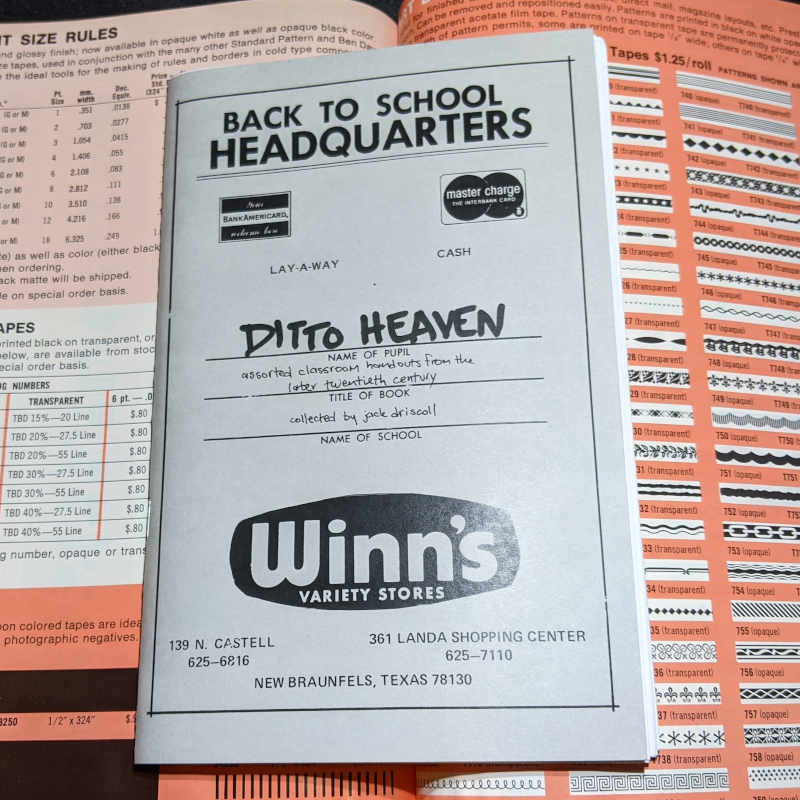 This is a commentary-free collection of classroom handouts and other school ephemera from before the year 2000. Most of it is stuff that was given to me in school by teachers that had been using the same handouts for years. No commentary, just a couple dozen examples of old professionally prepared worksheets, endlessly photocopied typewritten documents, and primitive word processing.